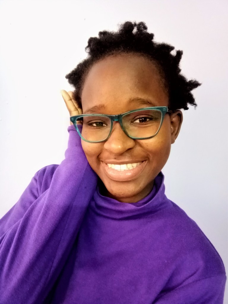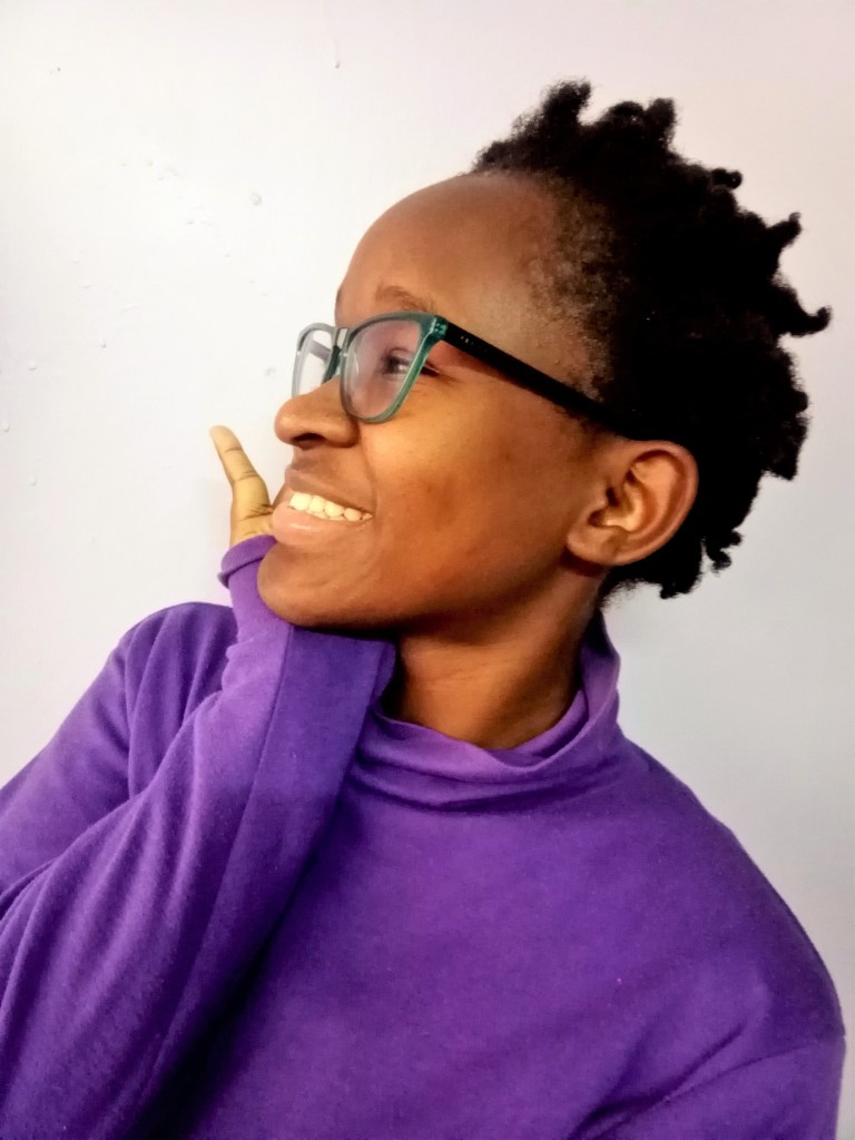 The Merriam Webster describes ‘beautiful’ as having qualities of beauty, generally pleasing, excellent. Early chilly Thursday morning she decided a purple pull neck, ebony black skirt and black flats would do the trick for the day. Before I get all excited and jump the gun, lets talk about the hair. African hair!